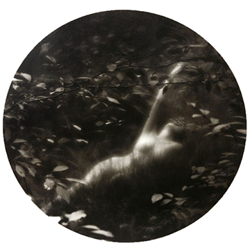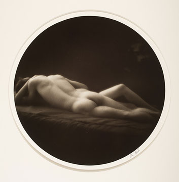 Given Brook's view of life as cyclical in nature, it isn't surprising that he often used a circular format for his photographs. He used the circle template seen below as a cropping aid. After the print had been made, Brook cropped the rectangle to a circle using a pie plate as his cutting guide.